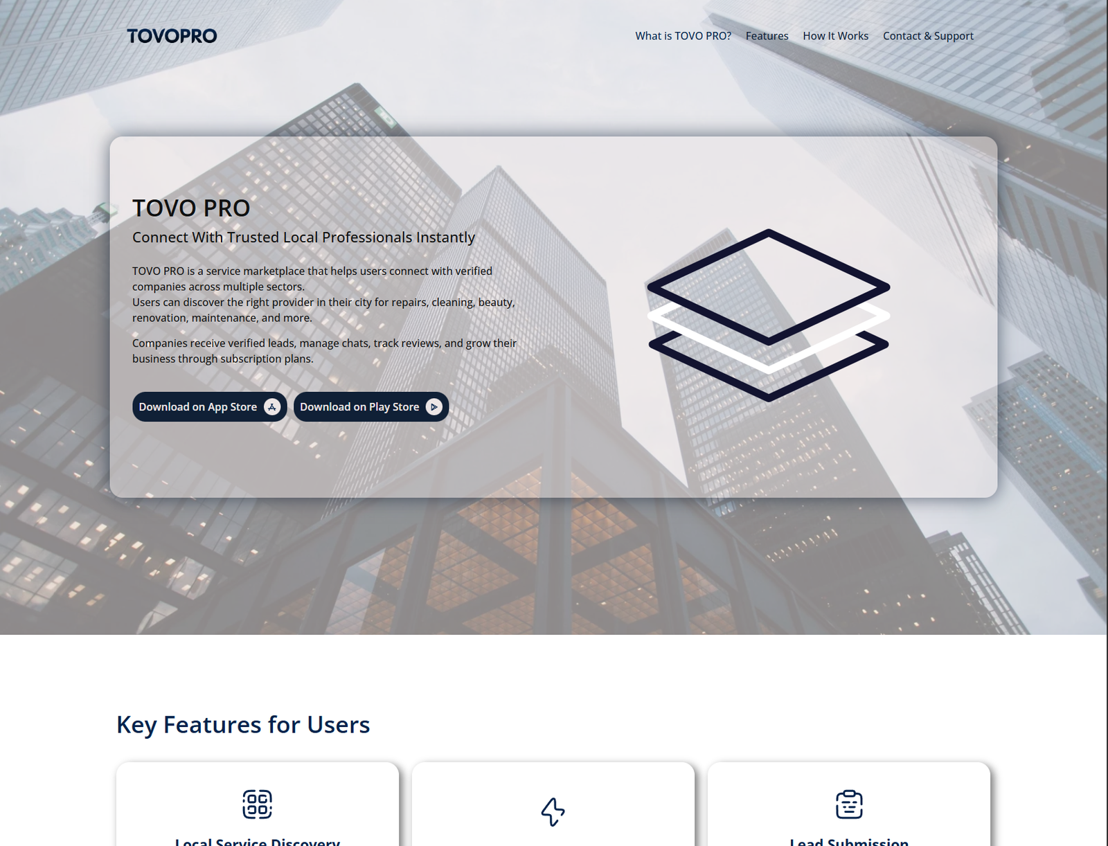 TOVO PRO is a modern service marketplace designed to seamlessly connect users with trusted, verified local professionals. Whether someone needs home repairs, beauty services, cleaning, renovation, maintenance, or specialized help, TOVO PRO makes it simple and fast to find the right provider within their city.