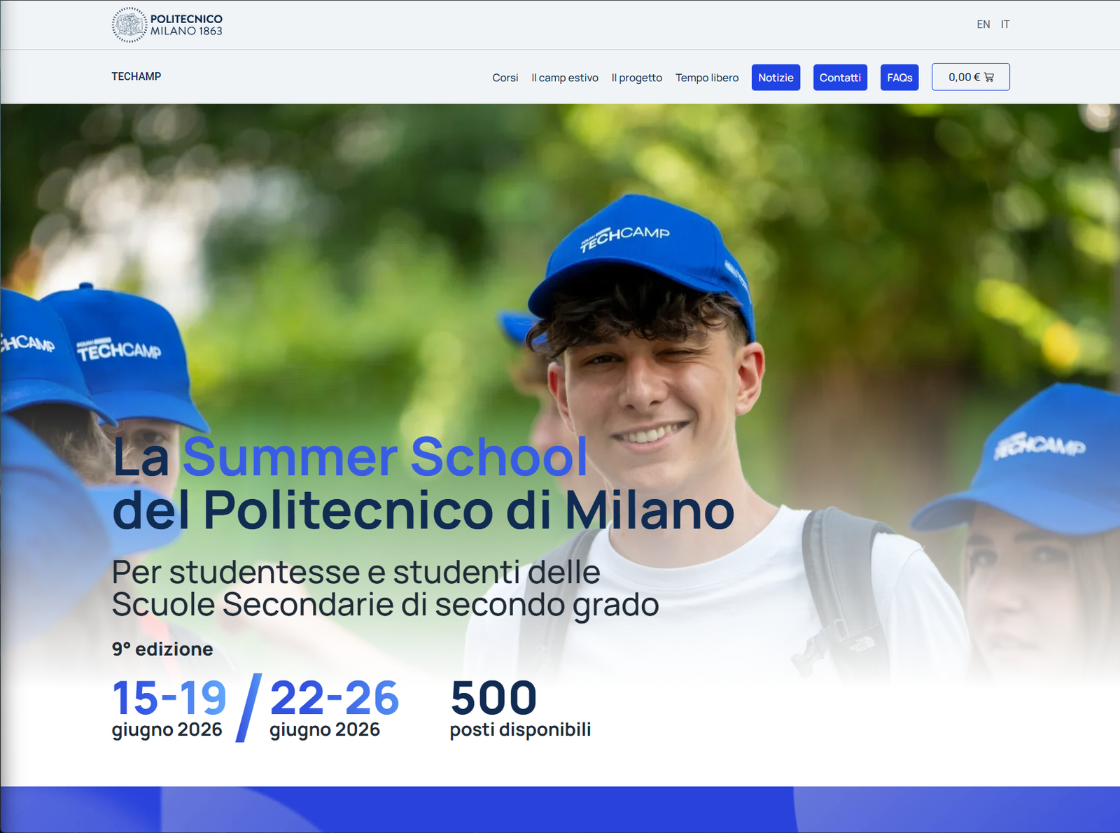 TECHCAMP is the official summer school of Politecnico di Milano, Italy’s leading technical university. Now in its 9th edition, TECHCAMP was created to introduce high school students to STEM disciplines through intensive courses designed with university-level academic standards.
