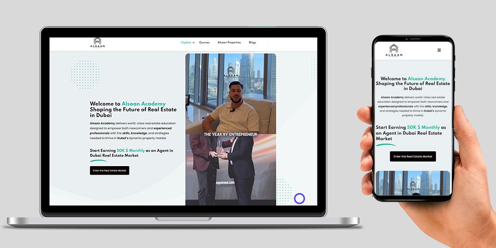 Alsaan Academy is Dubai’s leading real estate training institution, dedicated to equipping aspiring agents with the knowledge, credentials, and confidence needed to excel in one of the world’s most dynamic property markets. The Alsaan Academy website serves as an all-in-one digital campus, where students can explore course offerings, register for classes, access learning materials, and track their progress toward earning RERA-accredited certifications. Our mission was to create a sleek, mobile-optimized platform that reflects Alsaan’s commitment to excellence and empowers learners to start earning €50K+ per month as certified agents in Dubai.