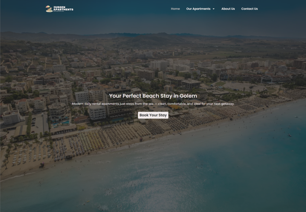 The website was created to showcase the apartments, highlight amenities, simplify booking, and present Golem as an ideal coastal destination. The platform needed to be mobile-friendly, visually appealing, and easy to navigate for both local and international travelers.